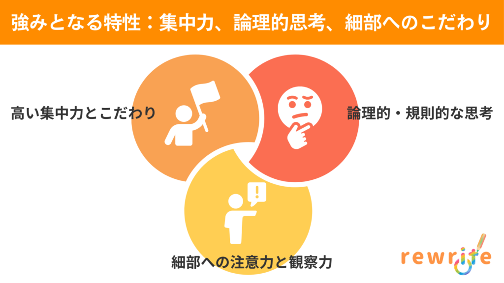 強みとなる特性:集中力、論理的思考、細部へのこだわり