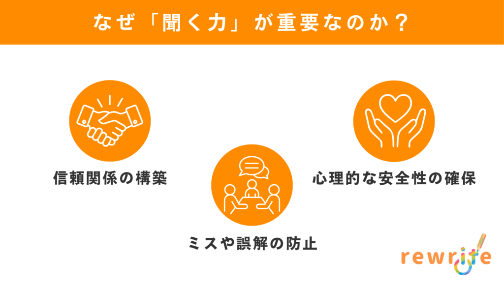 そのための強力な武器になるのが、「聞く力」です。コミュニケーションは「話す力」だと思われがちですが、実は良好な人間関係の土台は「聞く力」にあります。これは生まれつきの才能ではなく、誰でも練習すれば身につけられる「技術」です。