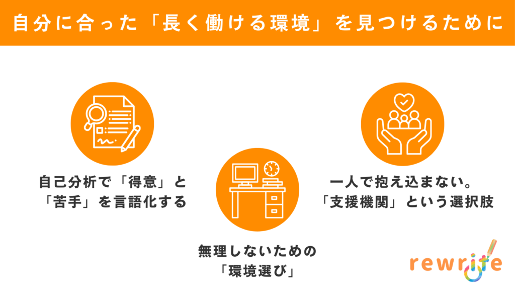 サバイバル術を駆使しても、職場環境そのものが自分に合っていなければ、心身は疲弊してしまいます。長期的に安定して働くためには、自分自身を深く理解し、自分に合った環境を選ぶ視点が不可欠です。