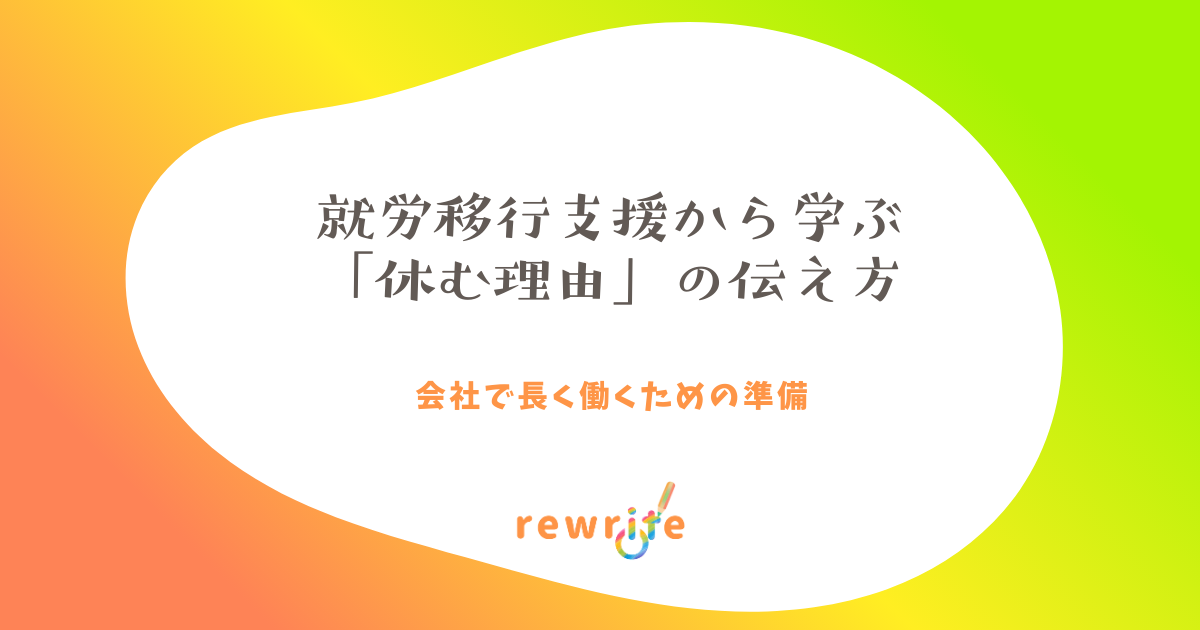 就労移行支援から学ぶ「休む理由」の伝え方:会社で長く働くための準備