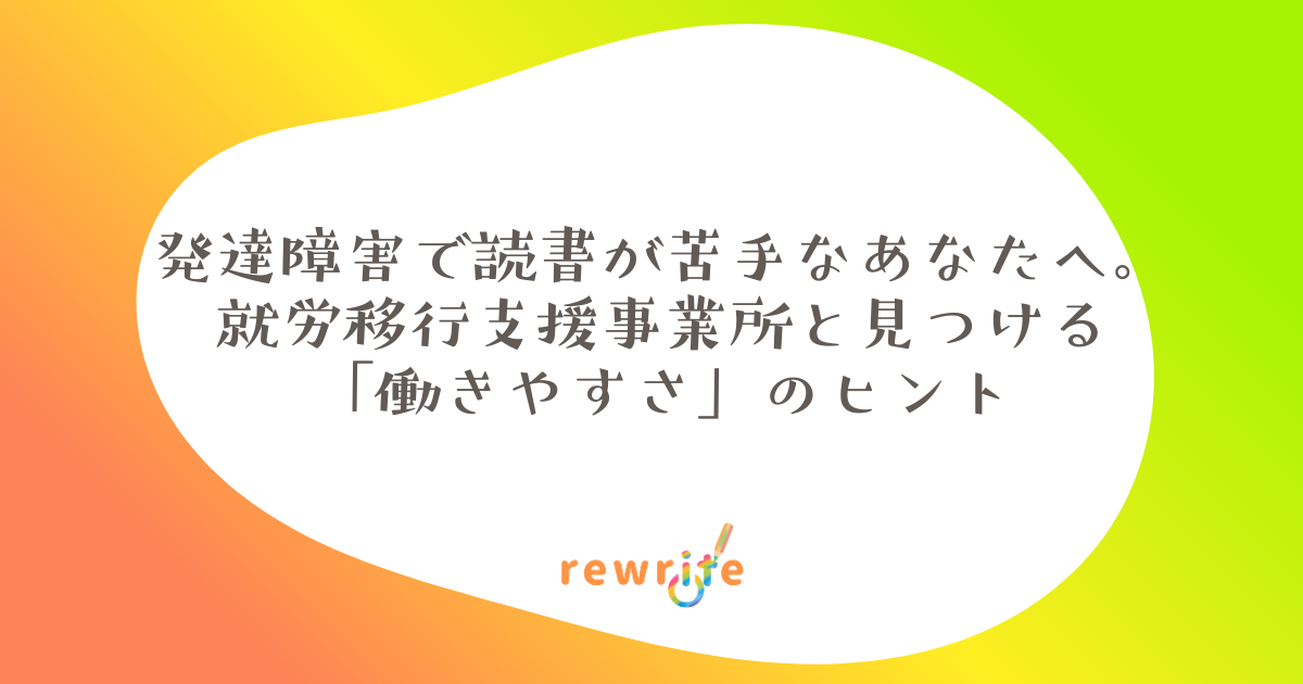 一般的に、読書が苦手な特性を持つ人には、以下のような特徴の仕事が向いていると考えられます。