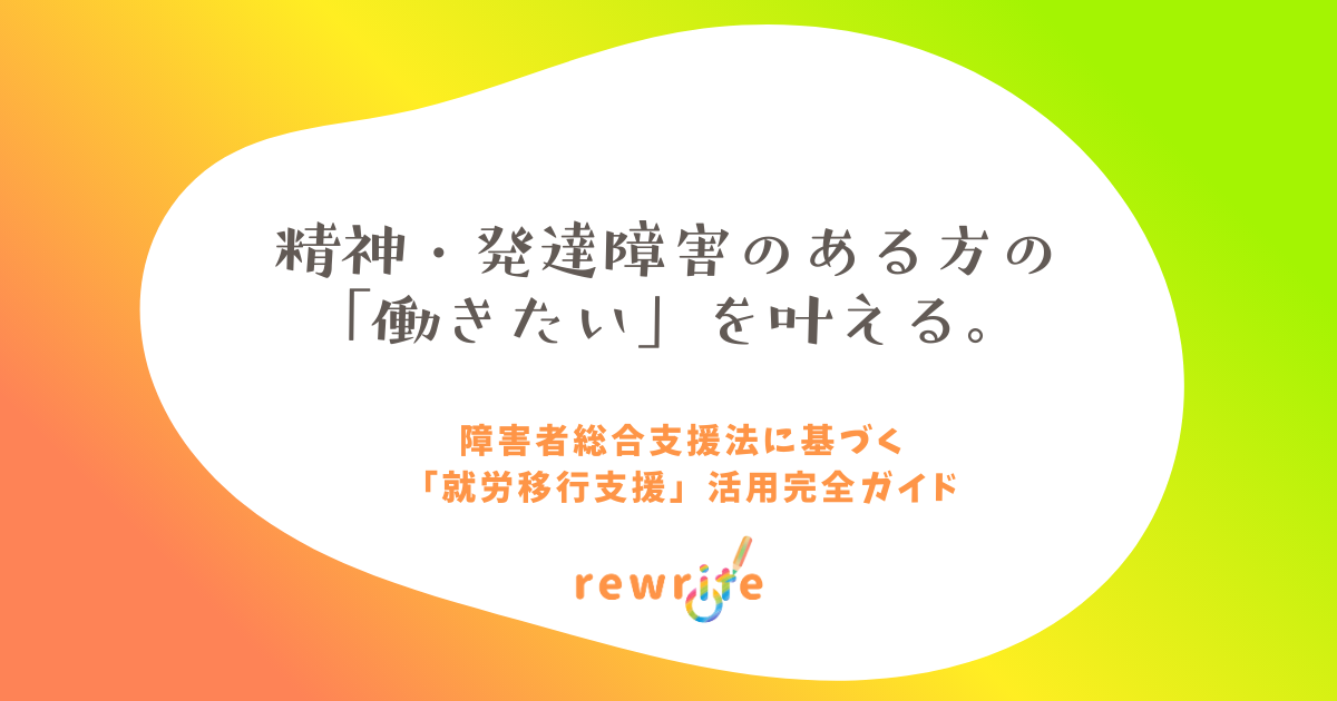 精神・発達障害のある方の「働きたい」を叶える。障害者総合支援法に基づく「就労移行支援」活用完全ガイド