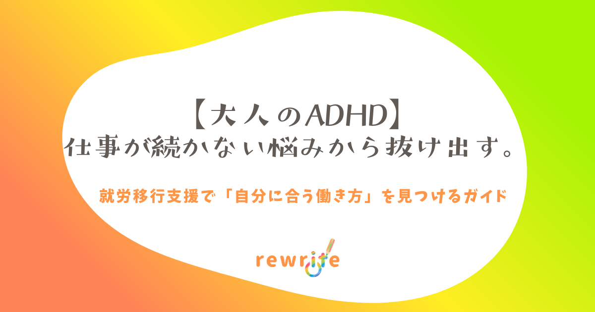 【大人のADHD】仕事が続かない悩みから抜け出す。|就労移行支援で「自分に合う働き方」を見つけるガイド