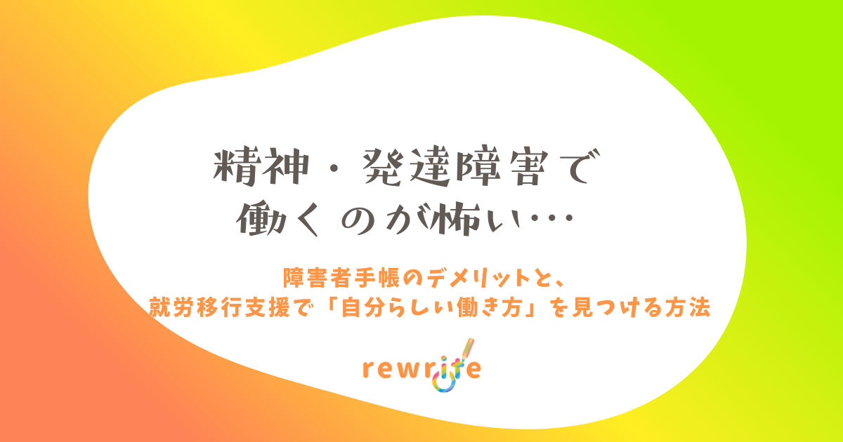 精神・発達障害で働くのが怖い…障害者手帳のデメリットと、就労移行支援で「自分らしい働き方」を見つける方法