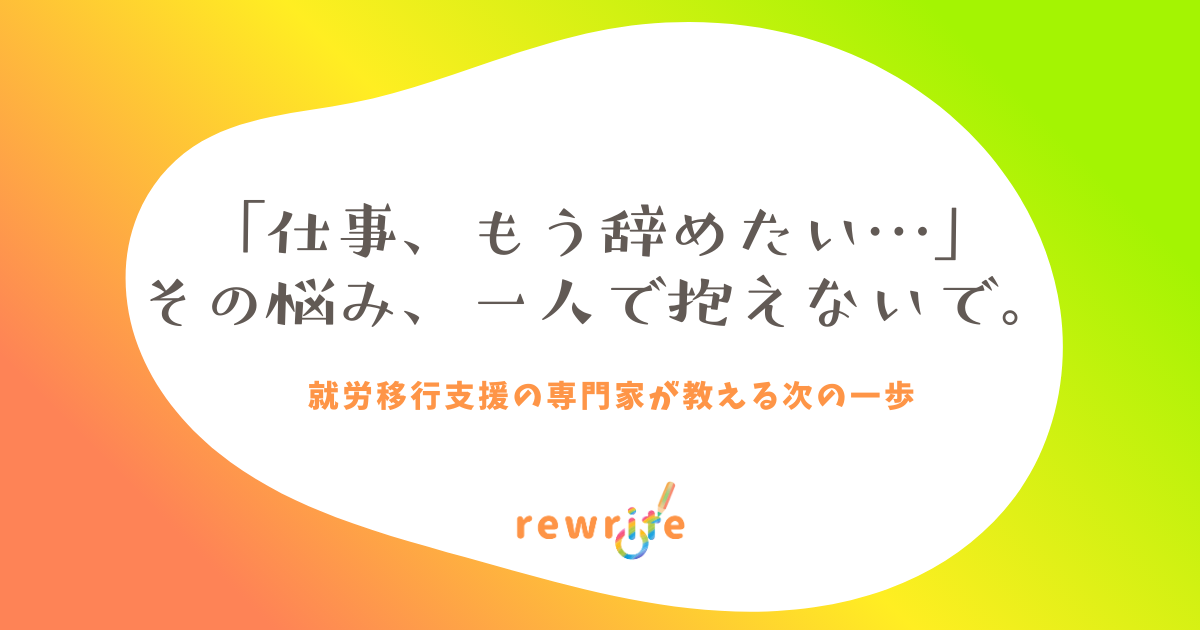 「仕事、もう辞めたい…」その悩み、一人で抱えないで。就労移行支援の専門家が教える次の一歩