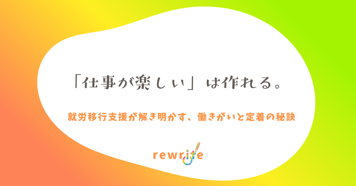 「仕事が楽しい」は作れる。就労移行支援が解き明かす、働きがいと定着の秘訣