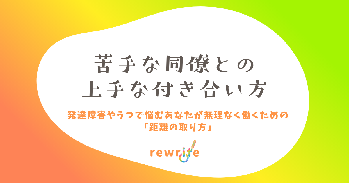 苦手な同僚との上手な付き合い方|発達障害やうつで悩むあなたが無理なく働くための「距離の取り方」
