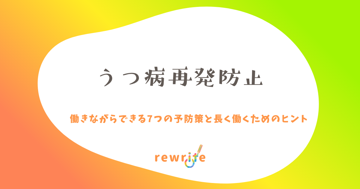 うつ病再発防止|働きながらできる7つの予防策と長く働くためのヒント