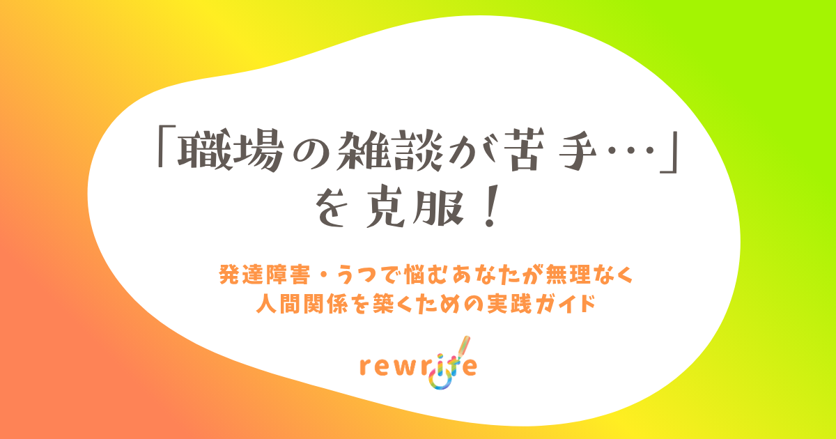 「職場の雑談が苦手…」を克服! 発達障害・うつで悩むあなたが無理なく人間関係を築くための実践ガイド