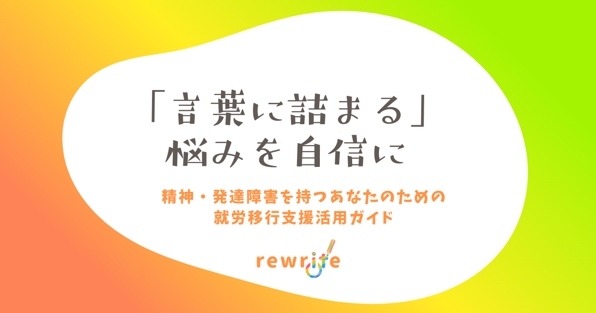 「言葉に詰まる」悩みを自信に。精神・発達障害を持つあなたのための就労移行支援活用ガイド