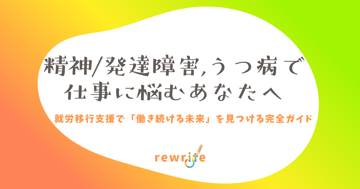 精神・発達障害、うつ病で仕事に悩むあなたへ:就労移行支援で「働き続ける未来」を見つける完全ガイド