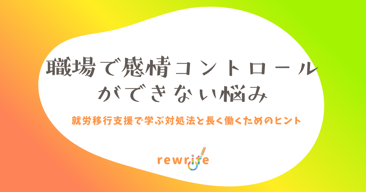 職場で感情コントロールができない悩み|就労移行支援で学ぶ対処法と長く働くためのヒント