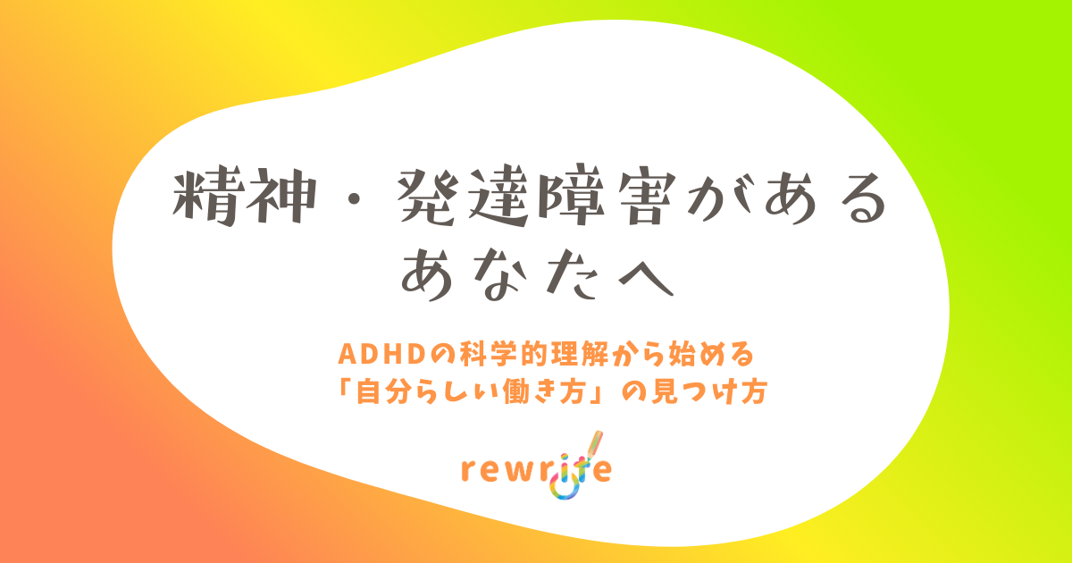 精神・発達障害があるあなたへ:ADHDの科学的理解から始める「自分らしい働き方」の見つけ方