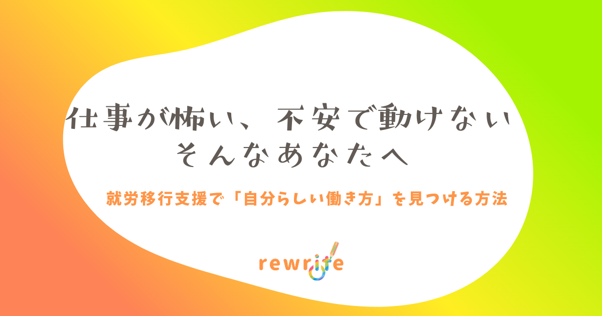 仕事が怖い、不安で動けない…そんなあなたへ。就労移行支援で「自分らしい働き方」を見つける方法